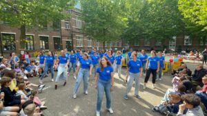 Naar jaarlijkse gewoonte sloten de leerkrachten het schoolfeest weer af met een optreden.