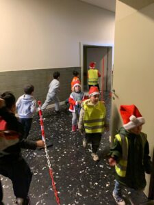 Alle kinderen lopen een parcours rond en door de school, kleurrijk uitgedost in het thema.